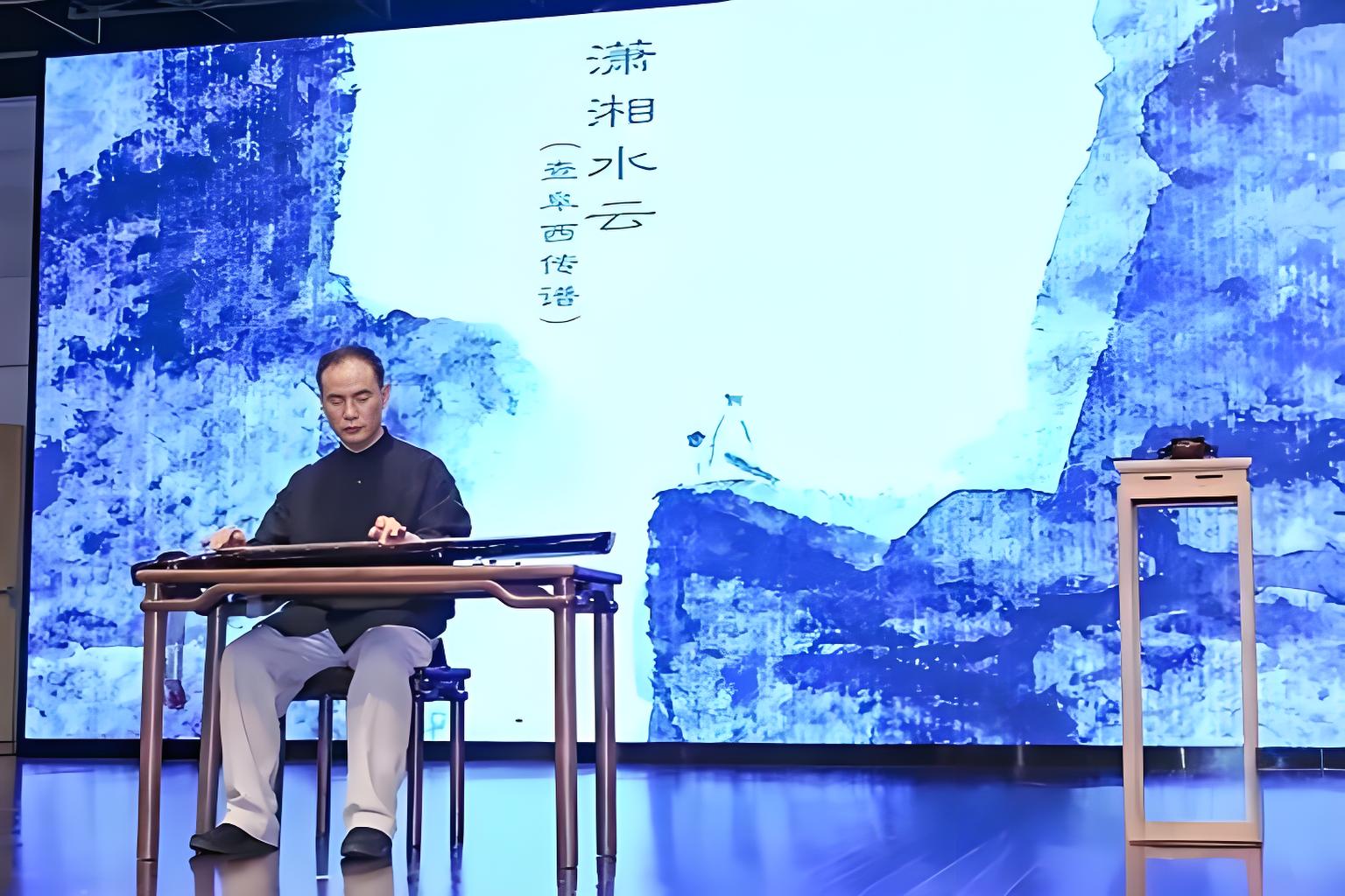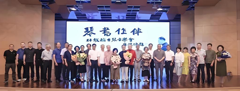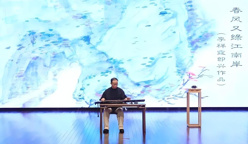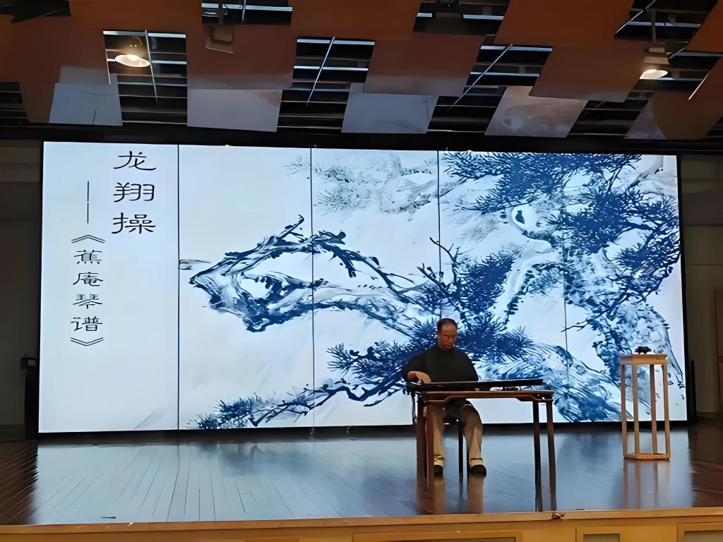 林锐翰老师不仅是揭阳市非遗古琴项目代表性传承人、我校古琴艺术研究所所长,更是师范教育系国画、书法、古琴教学的专职教师。音乐会上,他倾情演绎《流水》《潇湘水云》等经典名曲及现代佳作《春风又绿江南岸》。古琴的清雅之音与动态水墨巧妙交融,真正实现了“听画观琴”的沉浸式体验,其技艺与境界赢得汕头市古琴学会终身会长郑邦亮先生、汕头市古筝古琴非遗传承人黄冠英等艺术大家及数百琴友的高度赞誉。汕头市文旅局领导盛赞其为“传统文人精神的当代诠释”,揭阳市文旅局则强调其彰显了潮汕文化“和而不同”的创造力。
