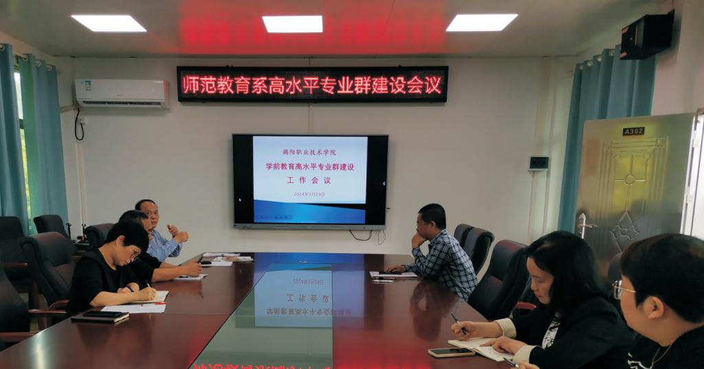 2024年3月29日,师范教育系在学前教育实训中心A302会议室召开学前教育高水平专业群建设工作会议,师范教育系党政领导、专业群建设团队全体成员参加了会议。会议由系主任黄英铭主持。