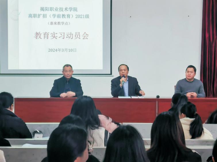 3月10日上午,系主任黄英铭和卢潮辉老师到惠来教师发展中心教学点开展教学工作交流,召开实习动员会议,受到该中心负责人的热烈欢迎。实习动员会上,黄主任作了动员讲话。首先,他对实习工作的重要性做了强调,要求教学点要提高站位,严格贯彻落实国家关于实习工作的指导性意见,严格执行学校实习工作部署和本系具体工作安排,认真按照有关规定切实布置落实学生开展实习工作,要将各项注意事项传达到每一位实习学生,加强实习巡视和全过程管理,确保实习工作的顺利进行。要及时解决所指导学生实习过程中存在的各类问题,为学生顺利完成实习任务提供保障。