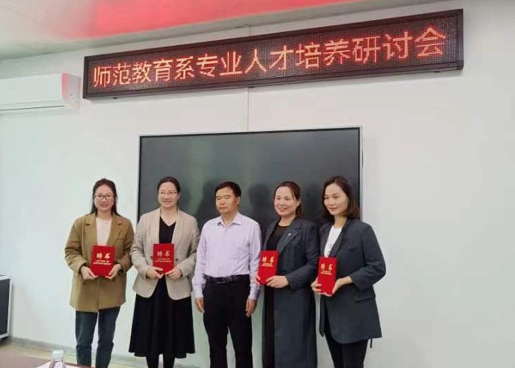 为进一步深化产教融合,充分发挥行业专家在学校专业建设与发展中的重要作用,2023年4月4日下午,师范教育系在学前教育实训中心三楼会议室举行了专业建设指导委员会委员聘任仪式暨专业人才培养研讨会。学校罗恢远院长、专业建设委员会委员、师范系领导以及学前教育、小学语文教育、小学数学教育、小学教育各专业教师代表出席了会议。会议由系主任黄英铭主持。