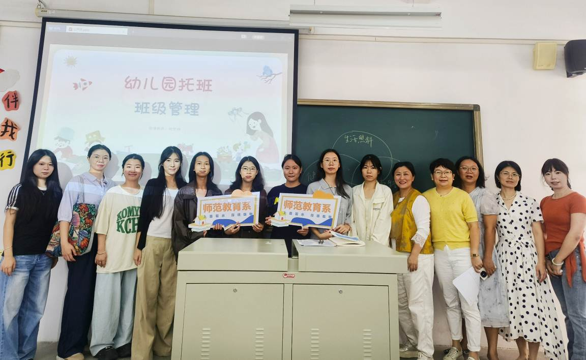 姚梦琳老师为学前教育(自主招生)242 班讲授《班级管理》。针对幼儿班级管理工作需求,姚老师创新设置情景模拟环节,围绕“幼儿哭闹安抚”“课堂秩序维护”等问题,让学生分组扮演教师与幼儿,沉浸式体验管理场景;结合幼儿园真实案例讲解技巧,帮助学生提前适应岗位。