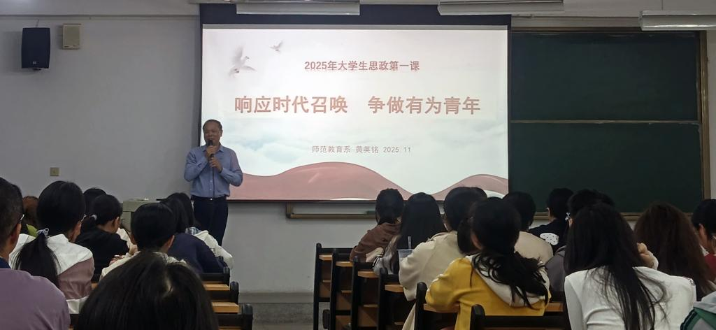 为强化思想引领,筑牢理想信念根基,11月27日下午,师范教育系党政负责人在教研楼103课室分别以“回望烽火路,扬帆向未来”和“响应时代召唤,争做有为青年”为我系2025级学子开讲 “思政第一课”。
