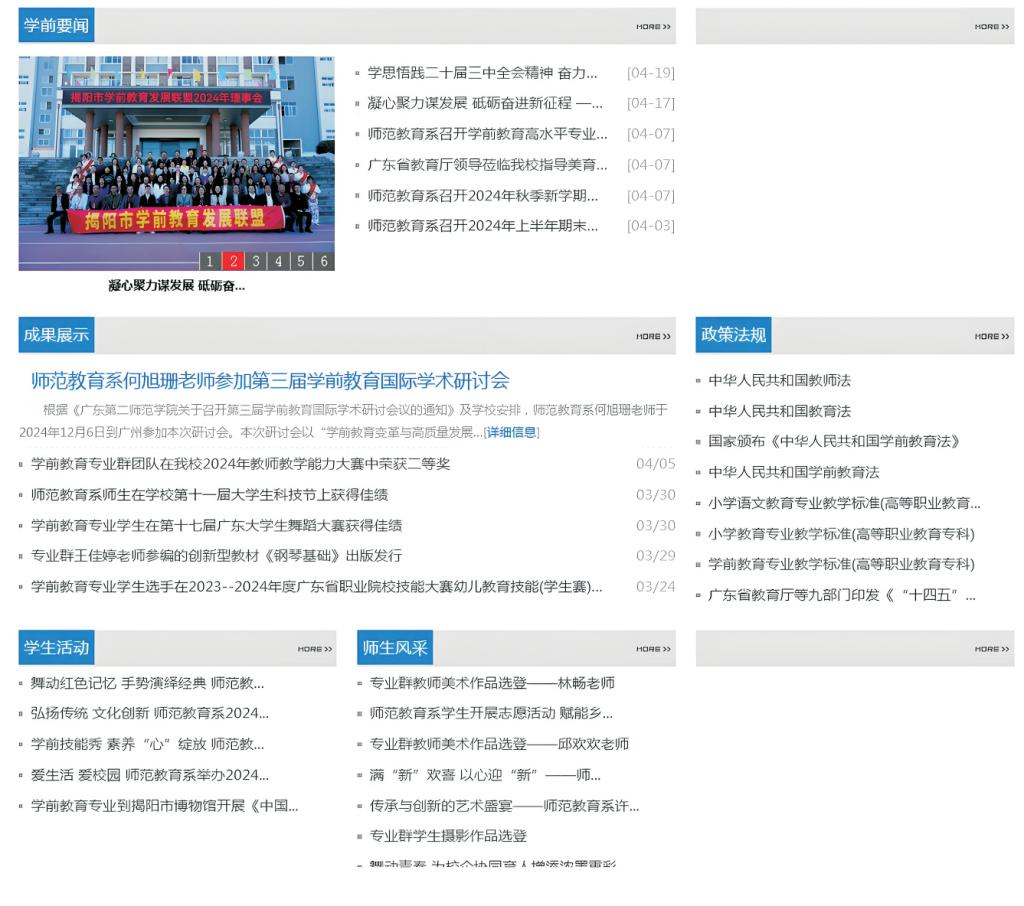 为了切实发挥本网站的效益,师范教育系专门安排了专业教师负责本网站的日常管理、内容更新、技术维护和安全保障等工作,确保网站正常运行。目前,网站各板块内容已陆续上传,吸引了全系师生浏览观赏,访问量与日俱增。