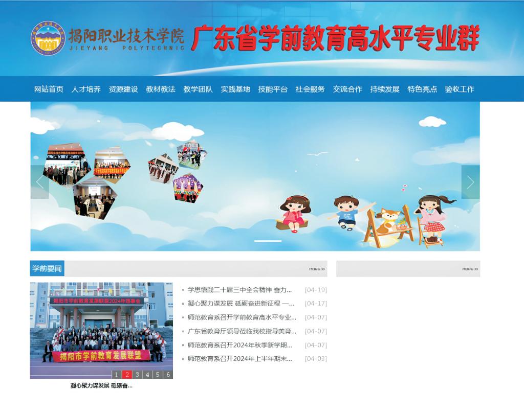 网站的建设旨在实时展示学前教育高水平专业群建设成果,同时作为教学平台,通过逐步丰富教学资源,促进教学研究、教学改革和教学交流,展示教学成果,提升教学服务质量,积极推动人才培养改革。