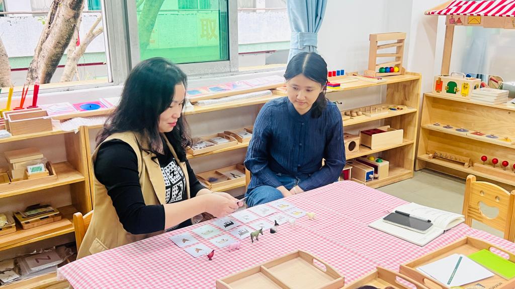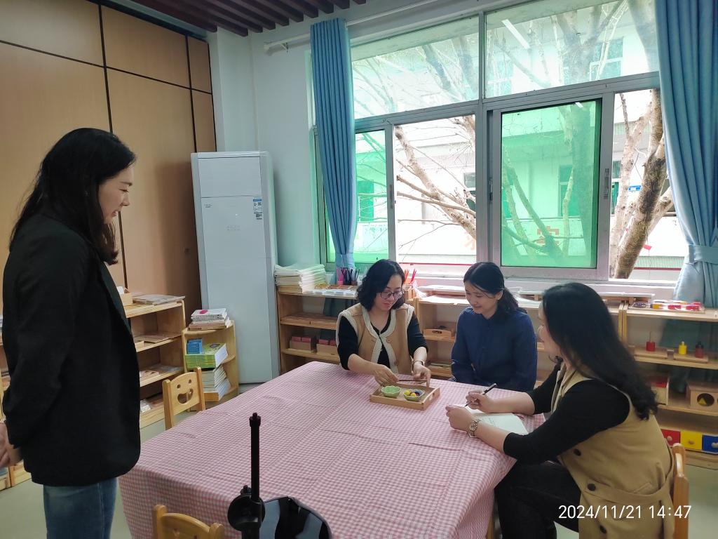 蒙氏教学法的培训环节,专家详细介绍了蒙台梭利教育体系的基本理念和方法,强调了尊重儿童的个体差异、培养儿童的自主学习能力和独立人格的重要性。教师们通过实际操作蒙氏教具,亲身体验了蒙氏教学的独特魅力。