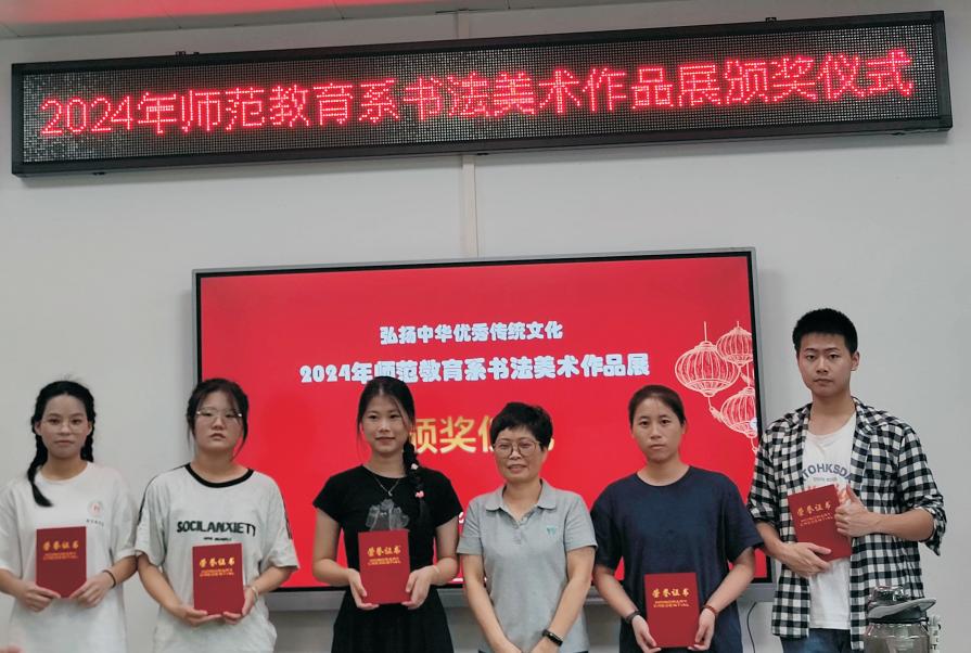 为切实贯彻《教育部关于全面实施学校美育浸润行动的通知》,进一步传承和发展中华优秀传统文化,激发师范生对传统文化和艺术的热情,提高师范生的艺术修养和创新能力,2024年5月,师范教育系举办了“弘扬中华优秀传统文化”学生书法美术作品展。