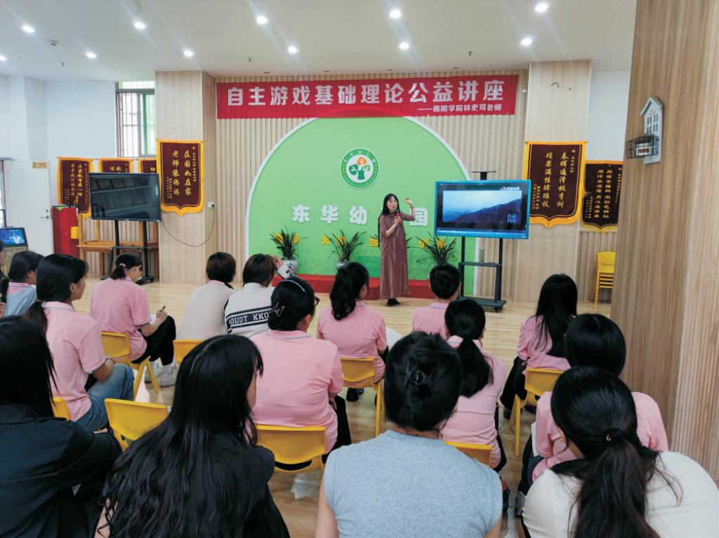 随着学前教育理念的不断革新与发展,自主游戏已成为当前幼儿教育领域的热点话题。2024年11月10日下午,师范教育系林史可老师受邀前往普宁市东华幼儿园,开展了一场关于自主游戏基础理论的公益讲座。此次讲座旨在帮助幼儿园老师们深入理解自主游戏的核心理念,掌握其基础理论与实际操作方法,进一步提升学前教育质量。