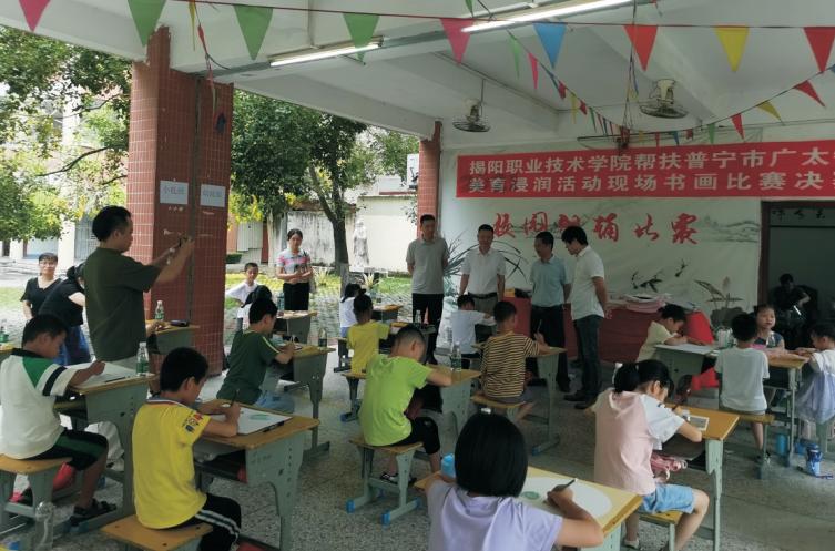 我院院长罗恢远在开班仪式上讲话,他希望此次揭阳职业技术学院帮扶普宁市广太镇“美育浸润活动”教师培训班的深入开展,能有效助推美育教育高质量发展。此次揭阳职业技术学院到普宁市广太镇开展美育浸润活动,将为广太镇艺术教育高质量发展充分赋能。