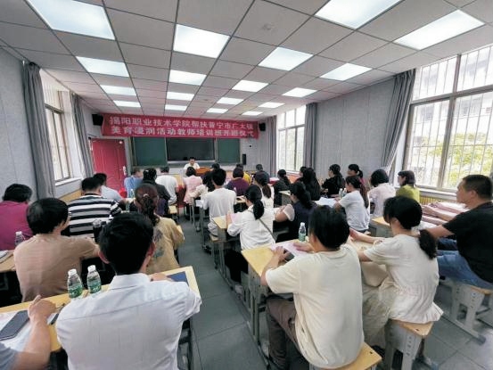 开班仪式结束后,我院师范教育系黄斌斌老师举行了讲座。他从水彩画发展概况、技法、观念与创作、创作实例等四个方面对水彩画创作做了详细生动的介绍与讲解。本次培训为期两个多月,将全面优化广太镇各中小学、幼儿园美育文化资源,有效提高广太镇各中小学、幼儿园的教学水平和教育质量。