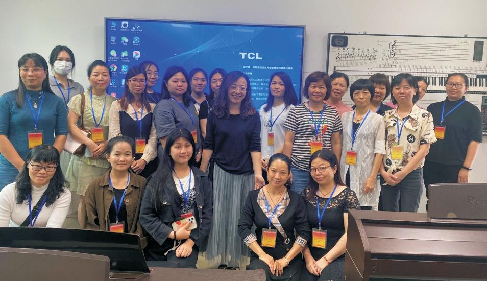 罗院长说,双方要深化合作,紧密携手,以师资队伍建设为抓手,多形式、多层面开展美育浸润活动,全力推动“乡村振兴 美育浸润”繁荣发展新局面。希望参加学习的老师要努力学习,把理论、实训、创作结合起来,提升教学能力和水平,与学院教学团队教师互学互鉴、互帮互助共同成为美育教育的行家里手。这次组织开展美术、书法、音乐培训班,目的在于全面提升广太镇中小学美育文化资源,在美育课程教学、教师队伍培训等方面提供帮扶支持,在日常化、多样化、特色化等方面打造普宁市广太镇美育浸润特色校园。