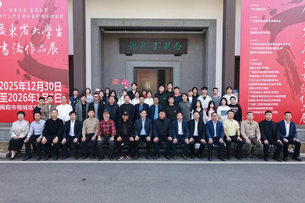 2025年12月30日,2025年广东省大学生书法作品展开幕式暨颁奖仪式在揭阳市西湖美术馆隆重举行。本次活动由广东省教育厅体卫艺处指导,广东省学生体育艺术联合会主办,揭阳职业技术学院承办,师范教育系积极参与承办活动,专门组织教师队伍,参与活动联络、作品收集、展务安排和服务等,受到主办单位的高度肯定。