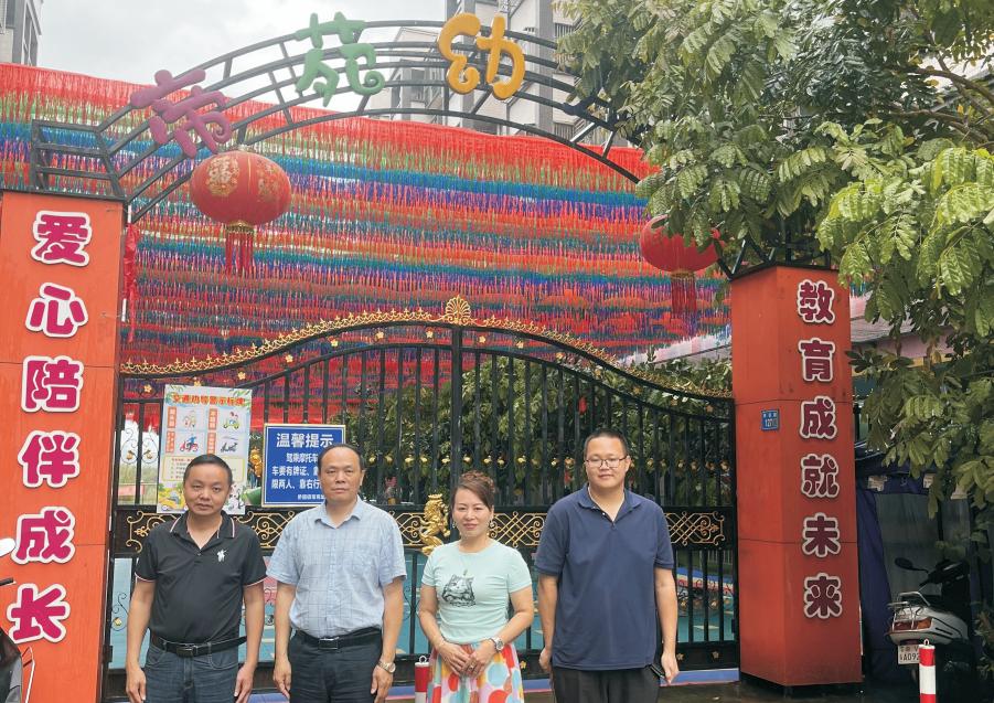 2024年4月23日下午,师范教育系主任黄英铭带领王辉坚、谢晓丰等老师到惠来县帝苑幼儿园、华宇幼儿园、曙明学校等企业开展访企拓岗活动,受到企业负责人的热烈欢迎。在帝苑幼儿园,陈雪君园长热情地向黄主任一行详细介绍了幼儿园的办学情况。在园长带领下,我系一行参观了幼儿园的办学环境,并与幼儿园负责人进行深入交流。黄主任向陈园长介绍了我系学前教育专业设置及人才培养规格、就业需求等情况,并就园方师资岗位需求、学生实践就业需求、食宿环境条件保障等方面与园方交换了意见。