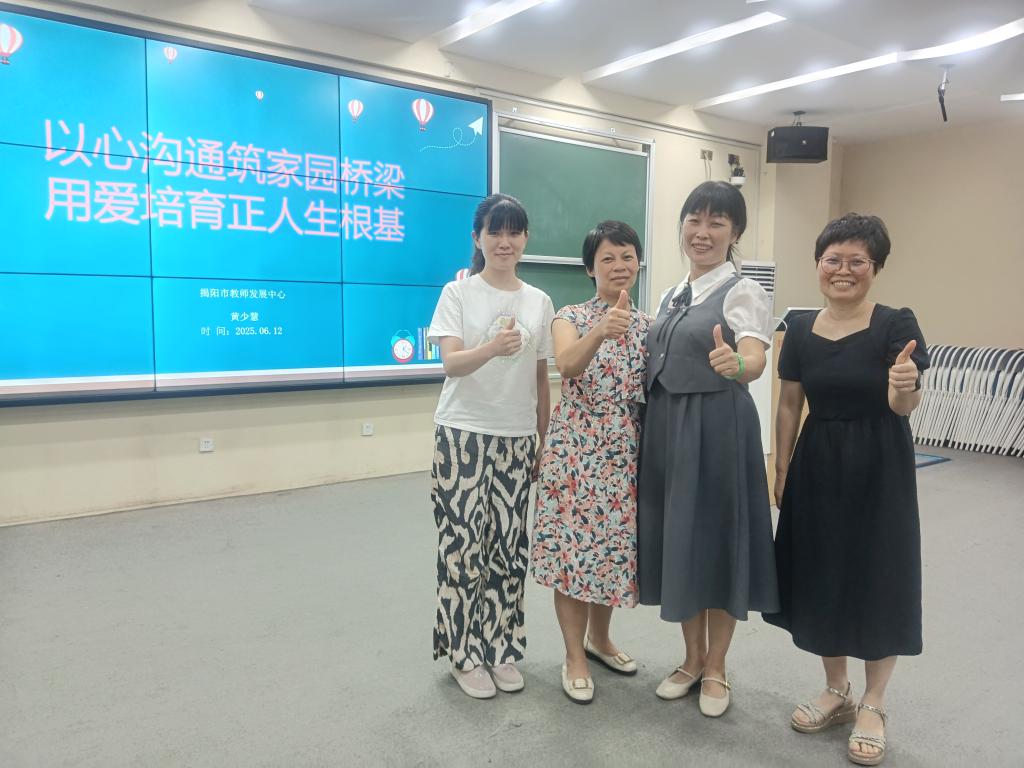 从政策解读到实践落地,从理论剖析到情感共鸣,本次讲座为学前教育专业师生呈现了一场思想与行动的双重盛宴。正如黄少慧老师所言:“教育是‘心’的事业,唯有以心换心,方能筑起家园之间的彩虹桥。”在揭阳市学前教育蓬勃发展的背景下,这样的专业引领必将为培养新时代幼教人才注入持久动力。