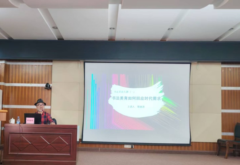 靳继君教授以深厚的学术积淀和温润的讲授风格,从五大维度展开分享。他指出,书法美育根植于儒道思想的文化土壤,既有《兰亭序》自然率真的审美取向,又含颜真卿书法“中和为美”的品格追求,儒道交融的精神内核为美育提供了丰厚滋养。在新时代背景下,美育已从“软糯”的审美体验升级为立德树人的“刚需”,2022年“美术与书法”被列为一级学科,更为书法教育的发展带来了历史性机遇。